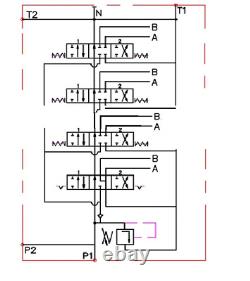 Control example: hydraulic motor in both directions and hydraulic cylinder in two-way operation. Recommended oil flow in the system: 0-40L / min. Hydraulic motor in both directions and hydraulic cylinders in two-way operation.