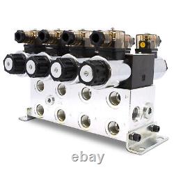 This double acting hydraulic control valve is designed to control the flow of hydraulic fluid in/out of a hydraulic cylinder or motor (depending on spool type). These valves can be used to add additional auxiliary hydraulic functions or replace a current hydraulic control valve. This is a four station, open-center, series configuration setup. A Spool (Controls Double Acting Cylinders).