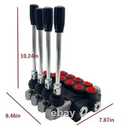 Hydraulic Directional Control Valve 4 Spool 13 GPM. The new design of 1/2/3/4 spool 13GPM hydraulic control valve can manage pumps and hydraulic cylinders, motors, tanks, etc. The adjustable release valve and durable cast iron body. Handle can be mounted vertically or horizontally. Wide Application-Fit for small tractors, tractors loaders, log splitters, etc.