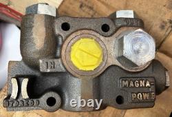 Vanne de contrôle hydraulique directionnelle Monobloc NOS Hydreco Magna Pow'r 506X39C. Il s'agit d'une vanne de contrôle hydraulique, utilisée dans des systèmes nécessitant un contrôle du débit de fluide, de la régulation de la pression ou du contrôle directionnel. De telles vannes sont courantes dans les équipements mobiles (tracteurs, chargeurs).