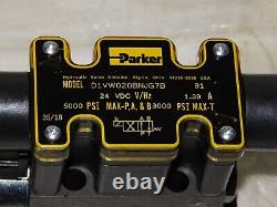 Ceci est une nouvelle valve de contrôle directionnel hydraulique à solénoïde Parker D1VW020BNJG7B 24VDC 1.39A 5000psi. Elle est neuve et inutilisée dans sa boîte.